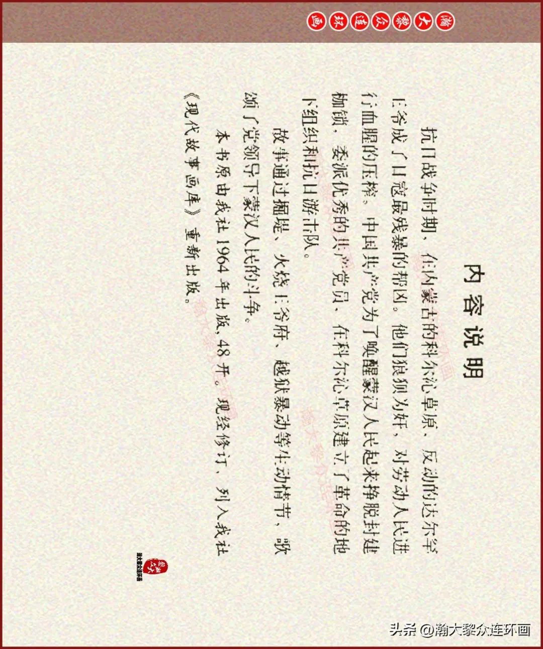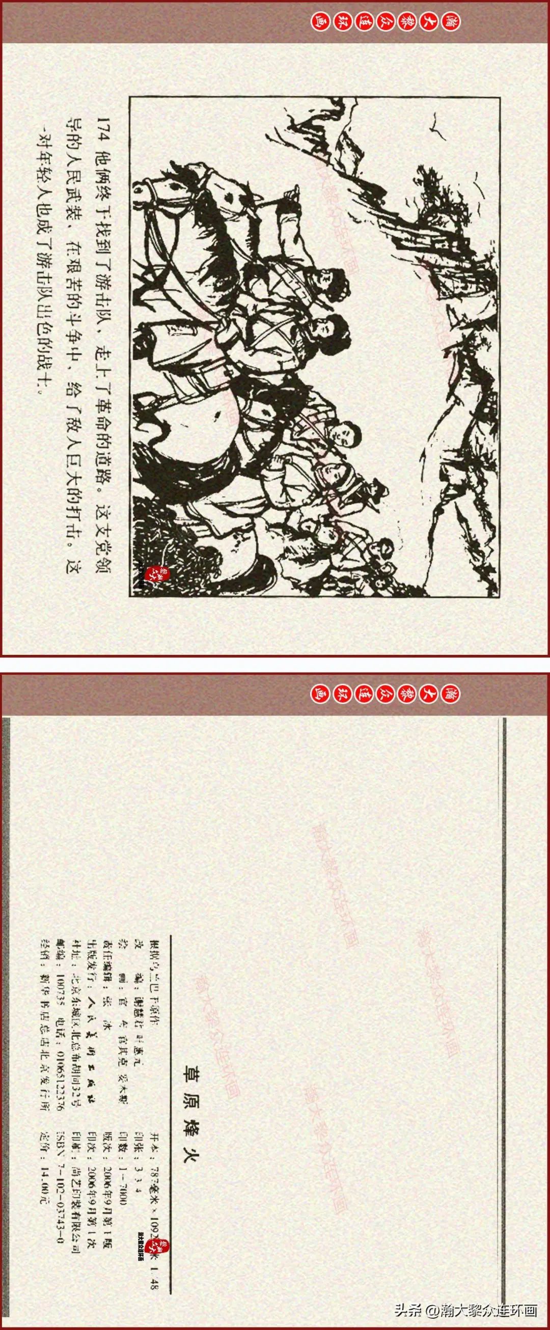 连环画《草原烽火》官布、官其克、妥木斯绘画,人民美术出版社1964年1第一版,本册2006年9月出版,印数:1-7000册,定价:14.00元。(图片资料源自网络或连环画扫描,仅交流学习,免费欣赏,如有侵权请告知删除,望谅解!)
