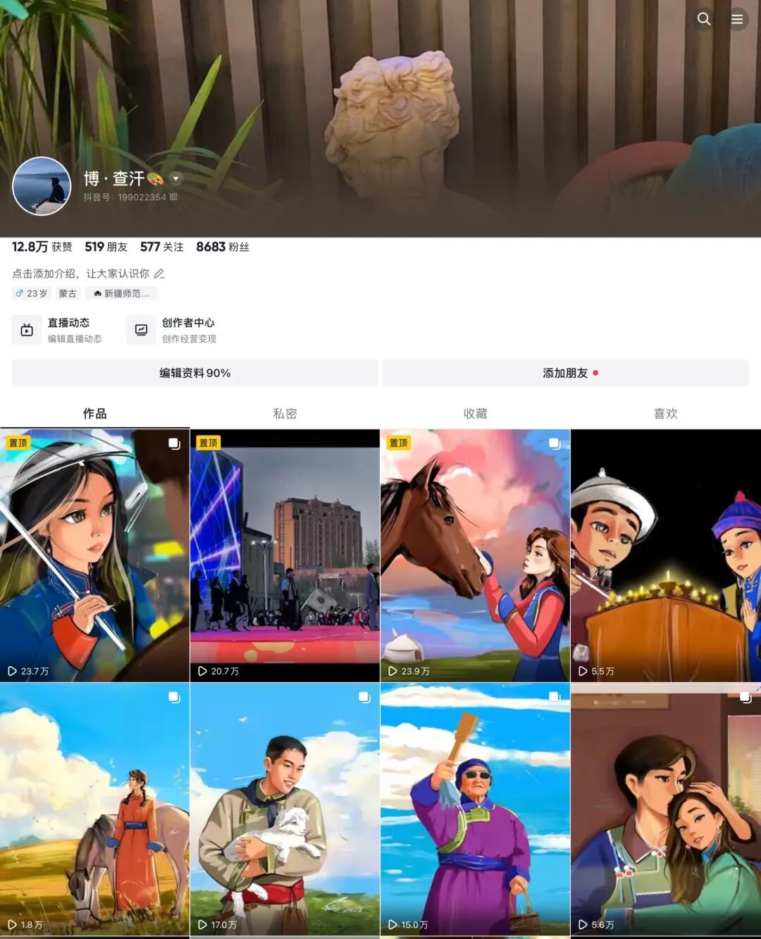 图|查汗巴依尔的抖音页面