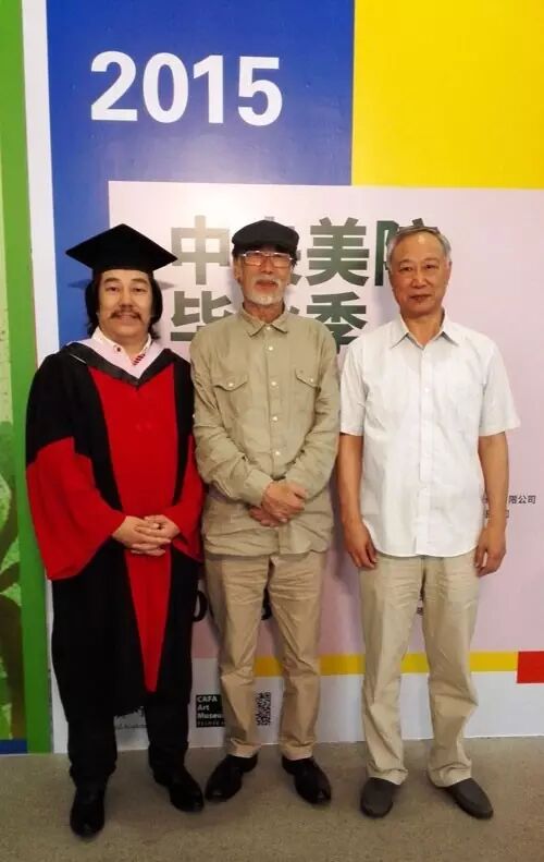 乌日切夫与两位博士生导师,中央美术学院教授广军先生(中)和罗世平先生(左)2015年