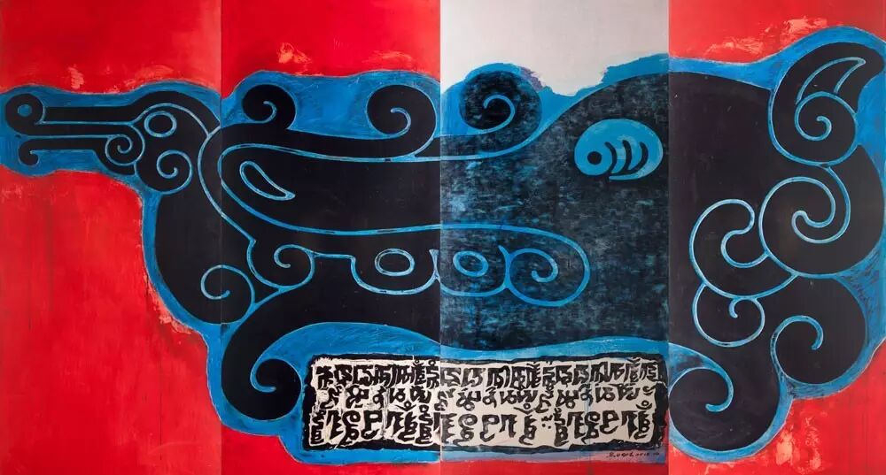 《蓝色图腾》/木板/综合技法/80x122cm/2015年
