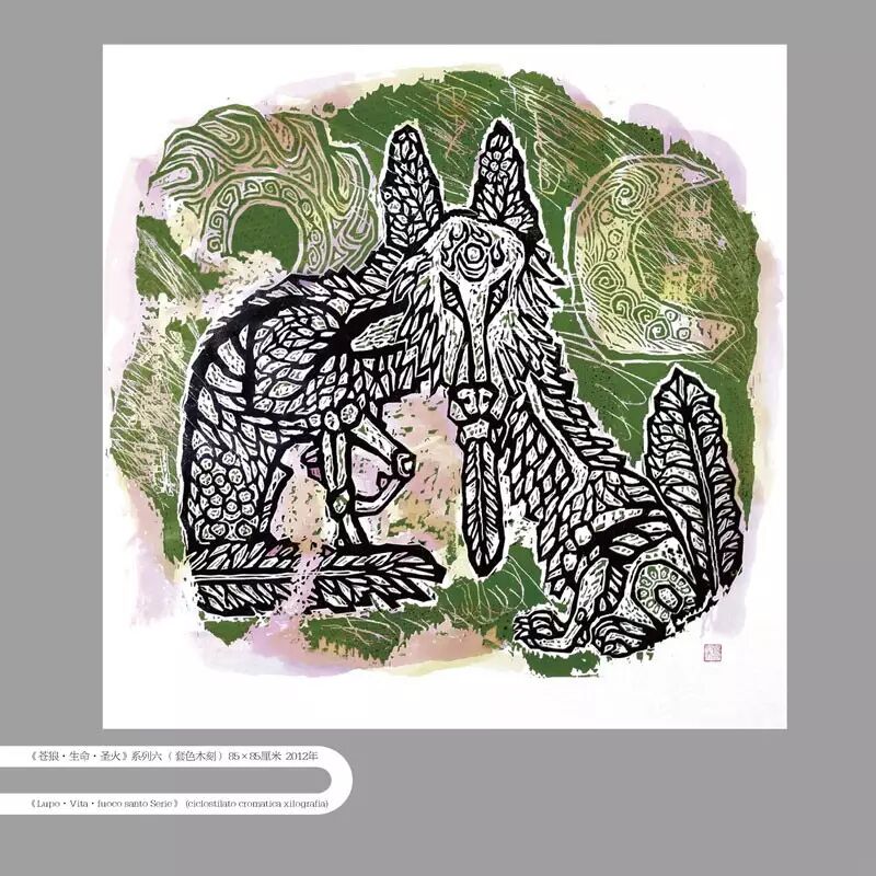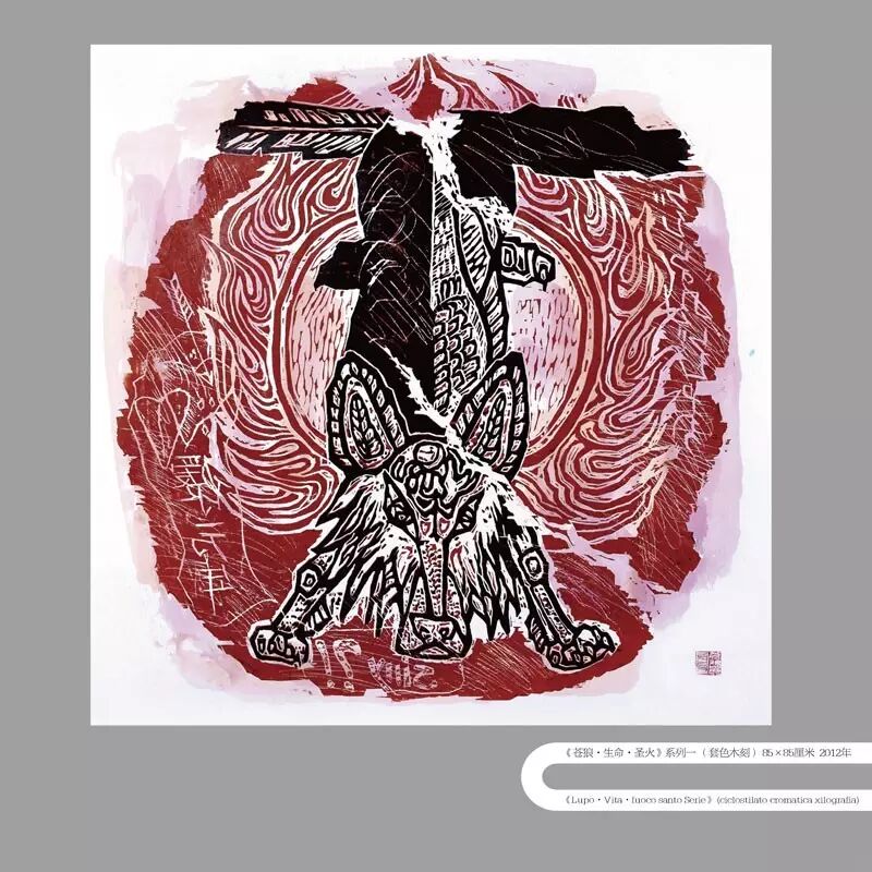 《苍狼·生命·圣火》系列六/套色木刻/85x85cm/2012年