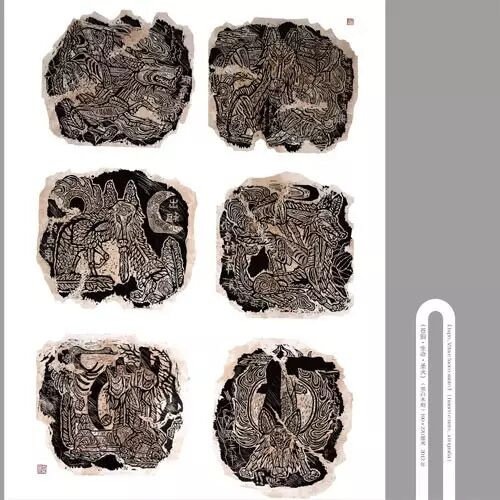 《传说草原》木版加综合技法/150x67cmx6/2015(两侧)