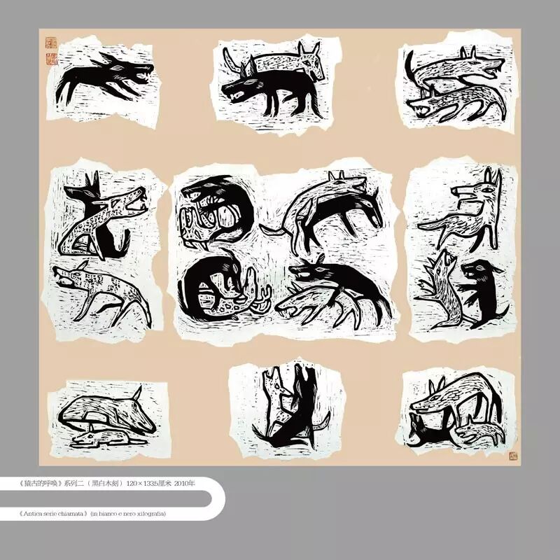《猿古的呼唤》系列二/黑白木刻/120x133.5cm/2010年