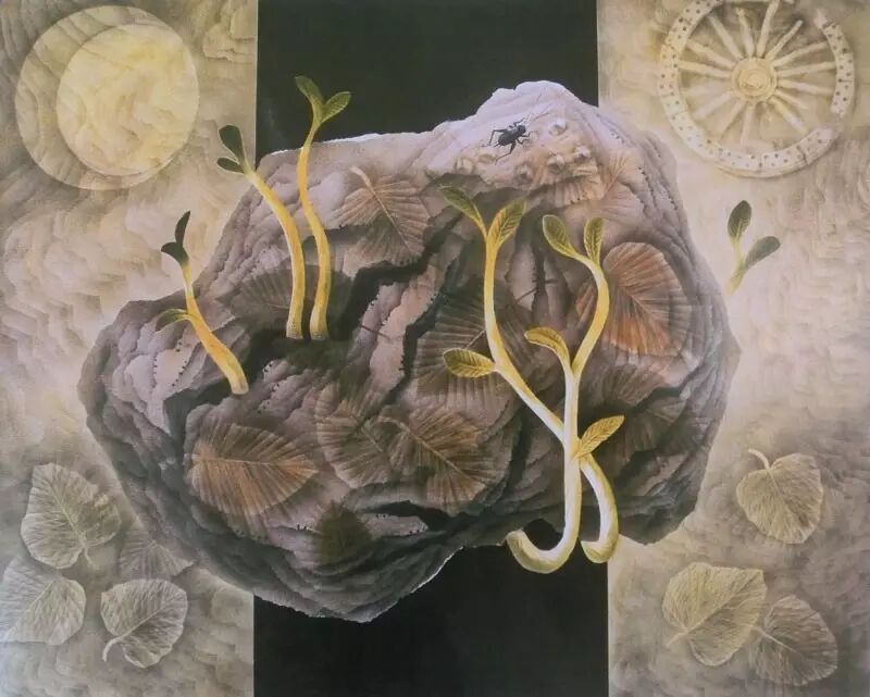 《化石·生命的空间》纸漏版、综合技法/70x84cm/1999年(全国第九届美展入选作品)