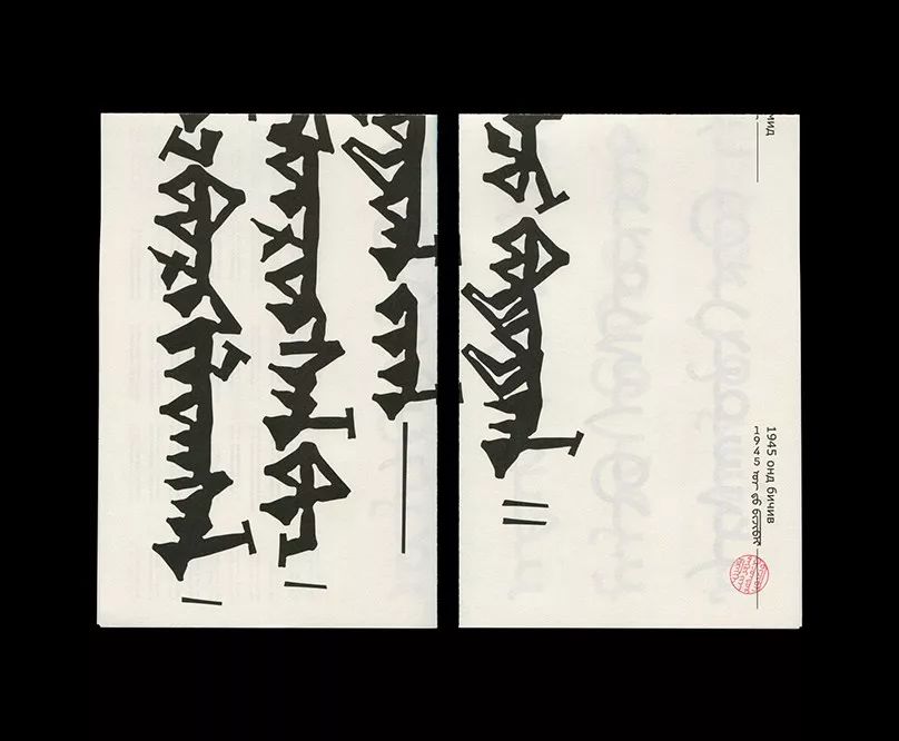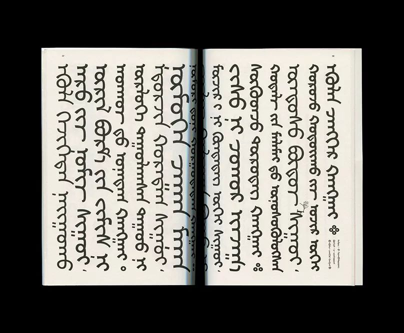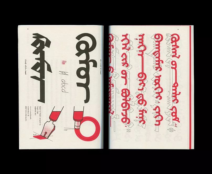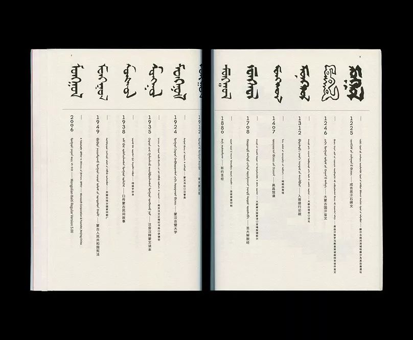 在我这个不懂蒙古文的门外汉看来,书册上的一列列蒙古文像一排排形态各异的牛马,亦或是跳跃站坐着的人。好在翻开后,书中都有工整的中文字行文。书册从设计母本字型选择开始,分享了设计师对于字体挑选的思考,对于其倾向的变体规则的阐述。其中的措辞颇为严谨也具有深意。比如关于对字型本质的思考——