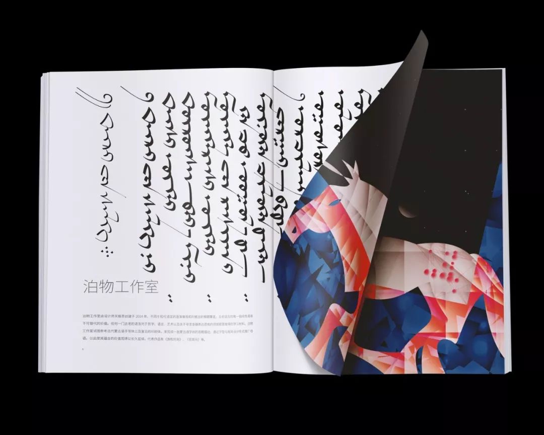 泊物工作室由设计师天格思创建于2014年。不同于现代语言的逐渐衰败和对概念的模糊覆盖,古老语言的唯一指向性具有不可替代的价值。任何一门古老的语言对于哲学、语言、艺术以及关于寻求准确表达思维的领域都是难得的学习材料。泊物工作室试图参考古代蒙古语手写体以及复古的印刷体,来完成一批蒙古语字体的前期描边,通过字型与相关设计形式推广母语,以此使其蕴含的价值观得以长久延续。代表作有《游牧时尚》、《花斑马》等。