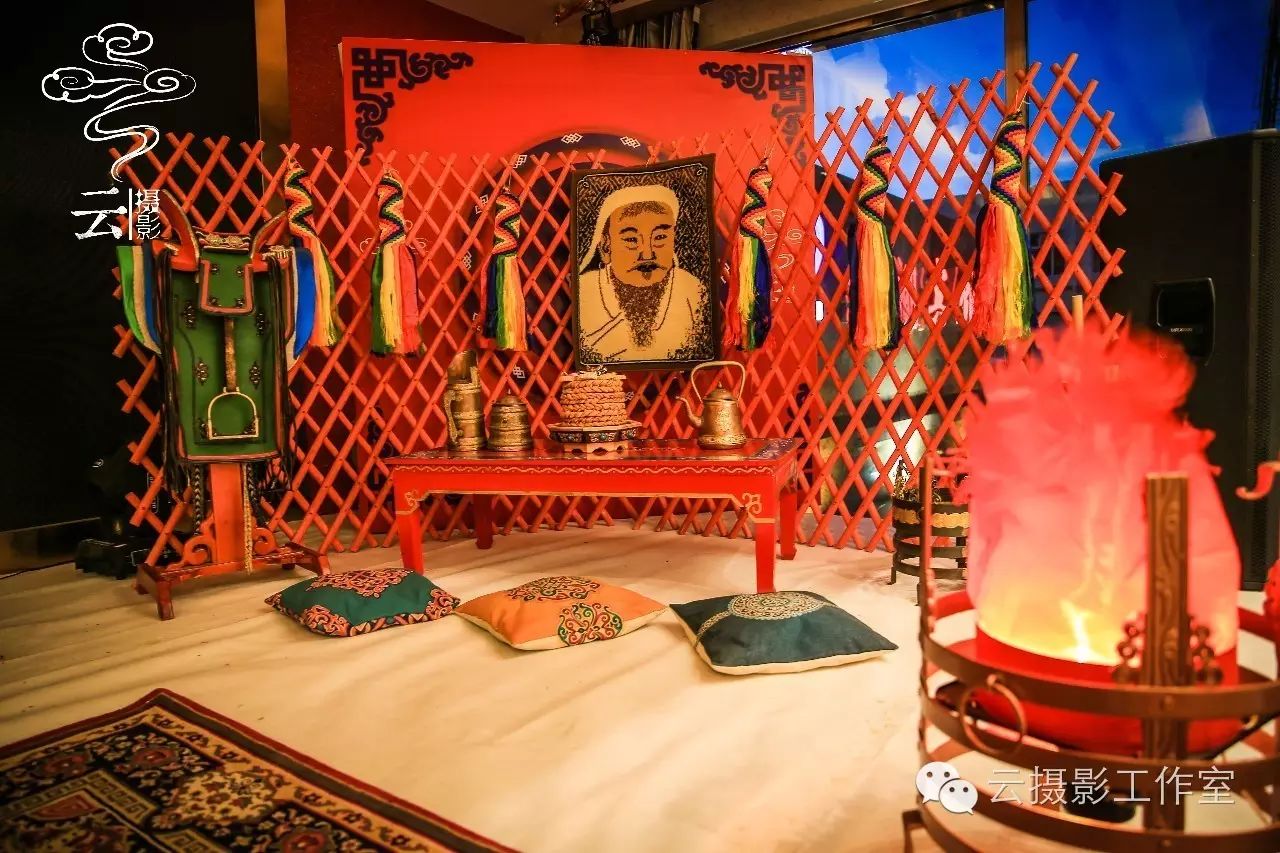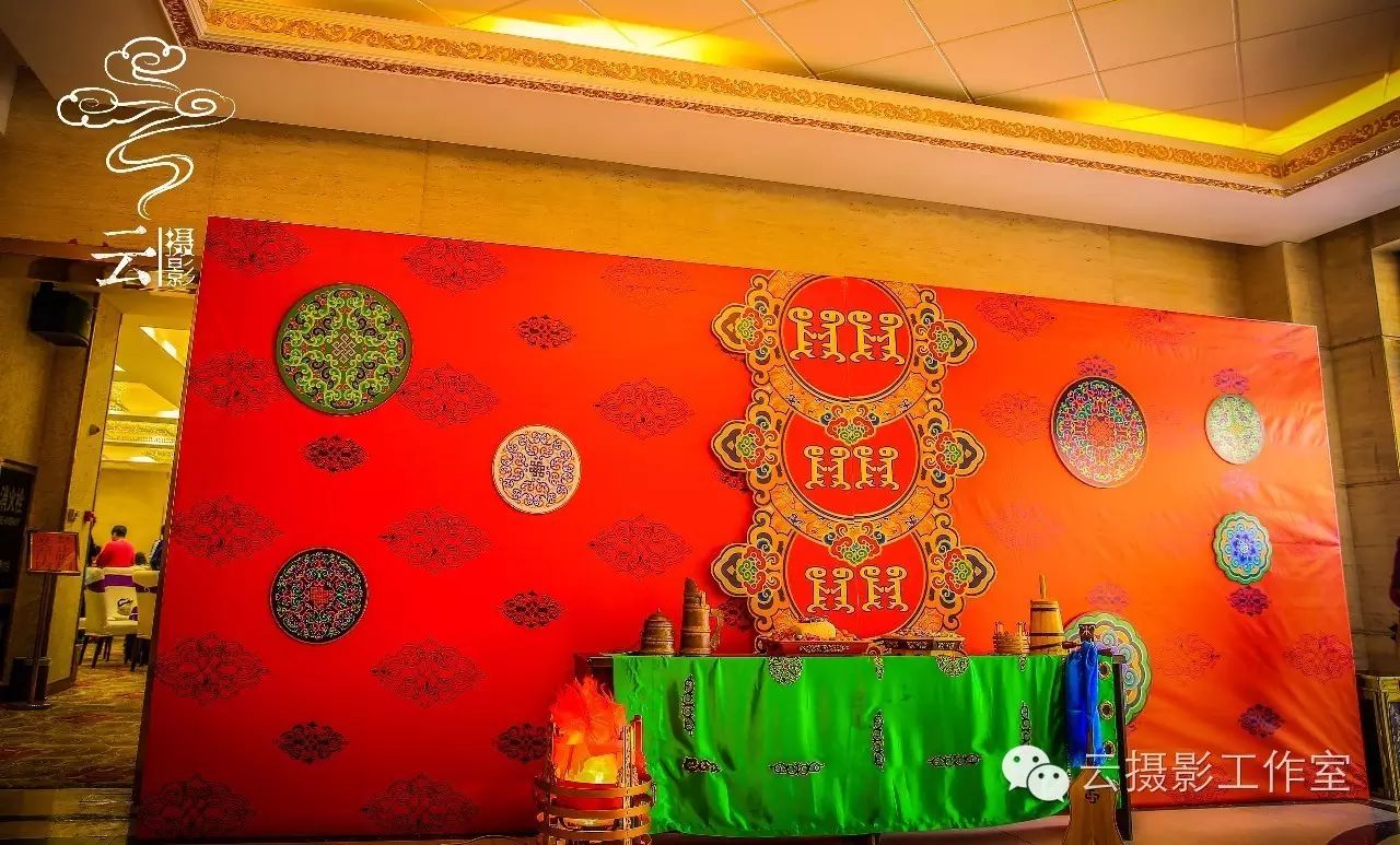 云摄影精心布置的别具蒙古特色的婚礼展示区,吸引了众多宾客的目光。
