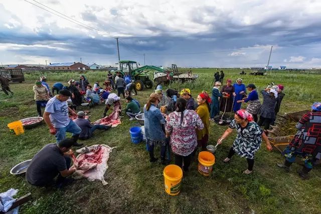 内蒙古,呼伦贝尔鄂温克旗,8月的大草原水草丰美、牛羊肥壮,我们亲历了一场壮大的布里亚特蒙古人传统婚宴。这场婚宴的准备工作提前3天开始,新郎家里的亲戚近百人一起上阵,宰杀、切配、煎炸……这种在自家草原举办的传统婚礼,现在是越来越少了。