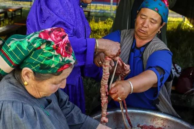 处理下水、灌肠这样精细的活儿,由女人们负责完成。布里亚特人的灌肠花样很多,有血肠、肉肠,还有精细制作的编肠。