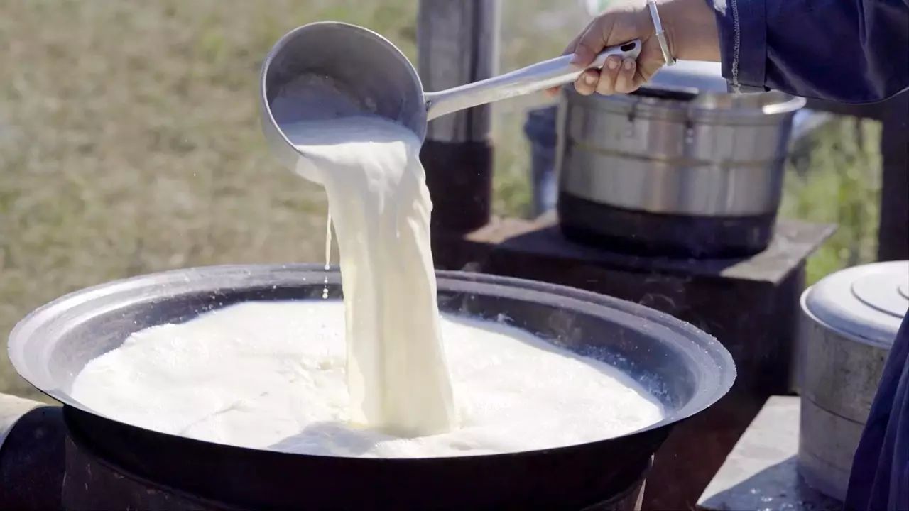 奶茶是蒙古人的日常饮品,婚礼上自然少不了。布里亚特人的奶茶和其他蒙古族相比显得清淡,他们喜欢直接将鲜奶烧热,再倒入泡好的砖茶水,扬沸几次即可出锅,连盐都不用加。