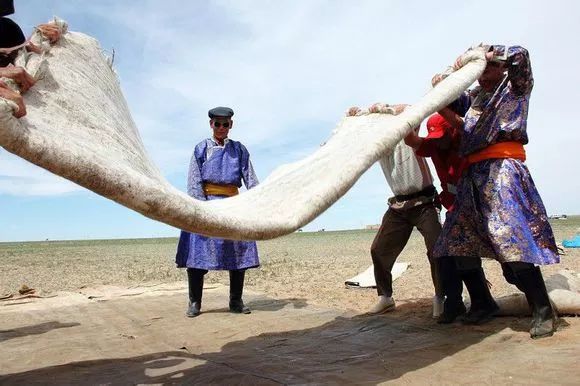 毡子是游牧民族生产和生活的必需品。擀毡这一工艺已有上千年的历史。随着时代的变迁、社会的发展,毡子也随之悄然退出了人们的生活,擀毡这一技艺也正面临着消失。