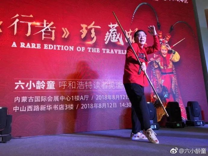 穿上红色蒙古盛装的《行者》在呼和浩特市与读者朋友们的见面会成功而顺利举行,年近60的六小龄童当场化身齐天大圣孙悟空,来了一段美猴王的经典表演,未减当年风范!