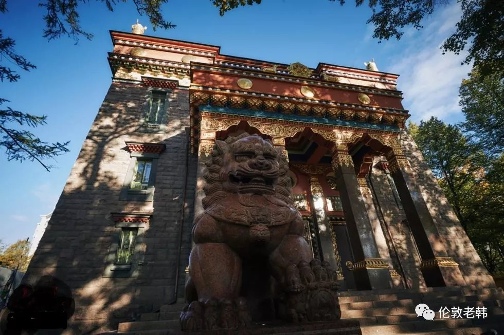 据说那是欧洲造价最高的佛教寺庙之一。寺庙建筑由碎花岗岩建造,内部装饰豪华。寺院的彩色玻璃窗由著名画家,东方学者尼古拉·罗伊里奇(NikolAi Roerich)设计。