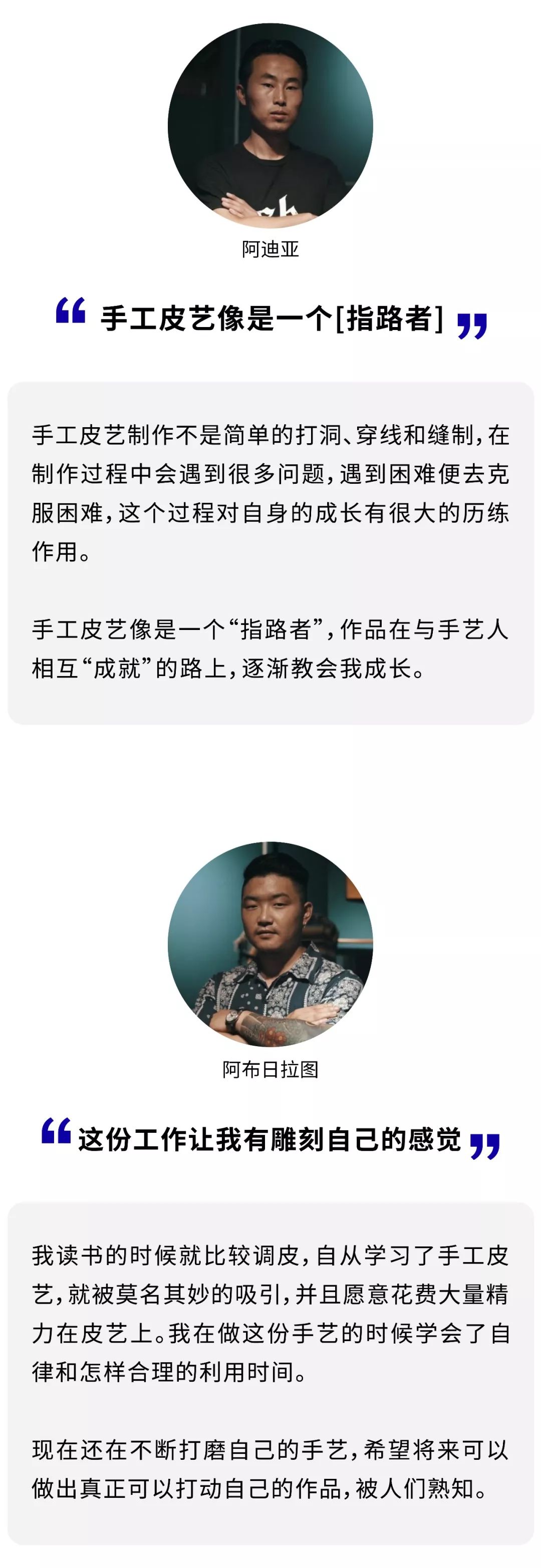 一张张皮子从原料变成用具,记录了手艺人的汗水和劳动,而这间皮艺工作室从无到有诞生的过程,也记录了阿布日拉图和阿迪亚的友谊。