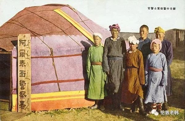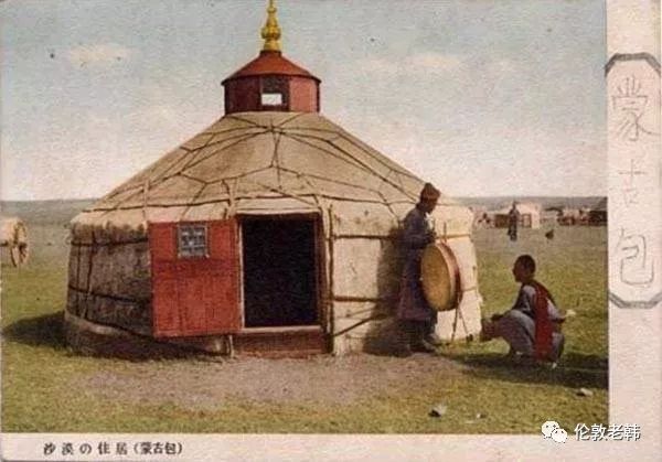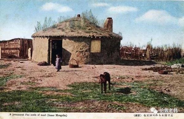 下面是满洲国时期蒙古地区的民俗照片。里面有泥土垒的穹庐居所。