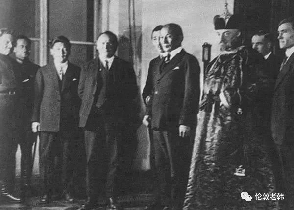 当时的蒙古代表团在莫斯科受到隆重接待,居中者像是乔巴山(?),穿蒙古袍者是外交事务委员齐切林(Георгий Васильевич Чичерин)。此人的蒙古情结下回再说。