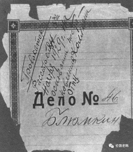 布柳姆金的第46号案件档案卷宗上面手写着:“奸细。基于国家政治保卫总局的决定,1929年11月3日被枪决”