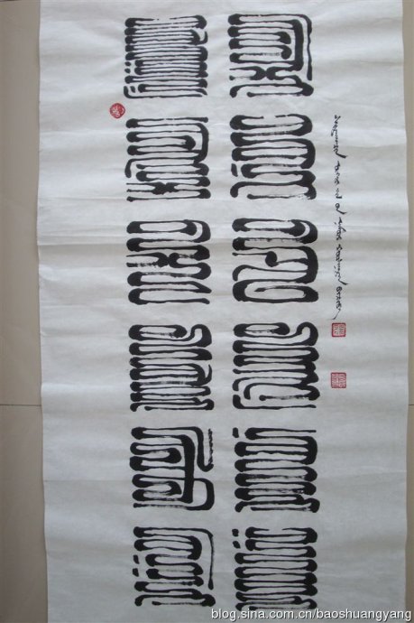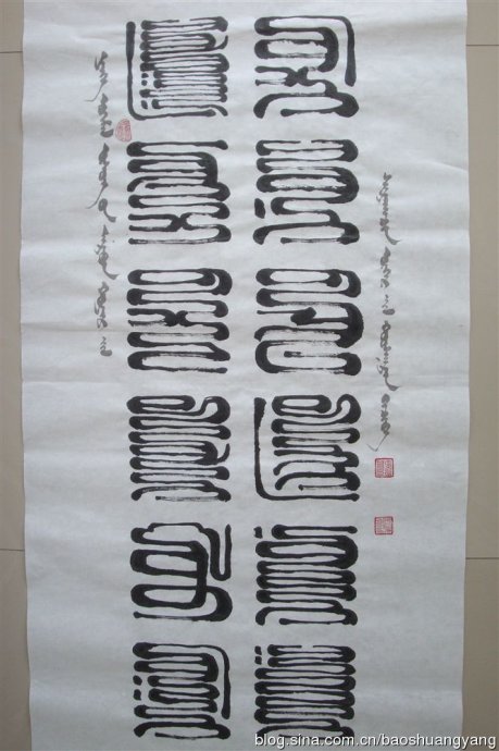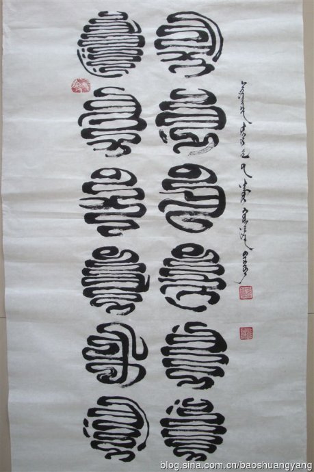 我把蒙古文篆字大概分五大类,就是小篆、大篆、中间篆、云纹篆和形象图案篆(这是我的创作)。蒙古文篆字美化了蒙古文字,而且增加了艺术感。现在蒙古文字的应用范围狭窄,而且重视的人很少,所以造成了遗忘的边缘。所以呼吁大家保护好宝贵的民族文化遗产吧!!!为了民族文化有实力和有地位的各位朋友帮我一把,我会谢谢你们的。下面大家欣赏我的蒙古文云纹篆篆字吧: 赞0踩0打赏☆收藏0