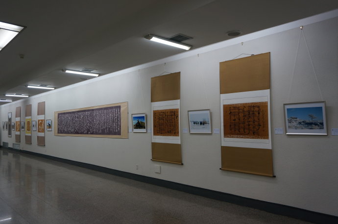 昨天上午办事路过内蒙古美术馆时,看见里面正在展出由锡林郭勒镶黄旗主办的书法和摄影作品展,于是便进里面参观了一会儿。
