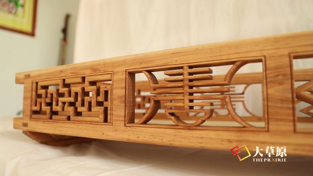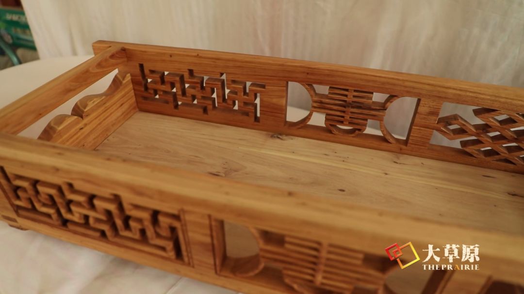 从十六岁进生产队当木匠,到现在坚守着木匠和雕刻手艺,只要有人委托,孟和乌力吉总是做的仔仔细细。