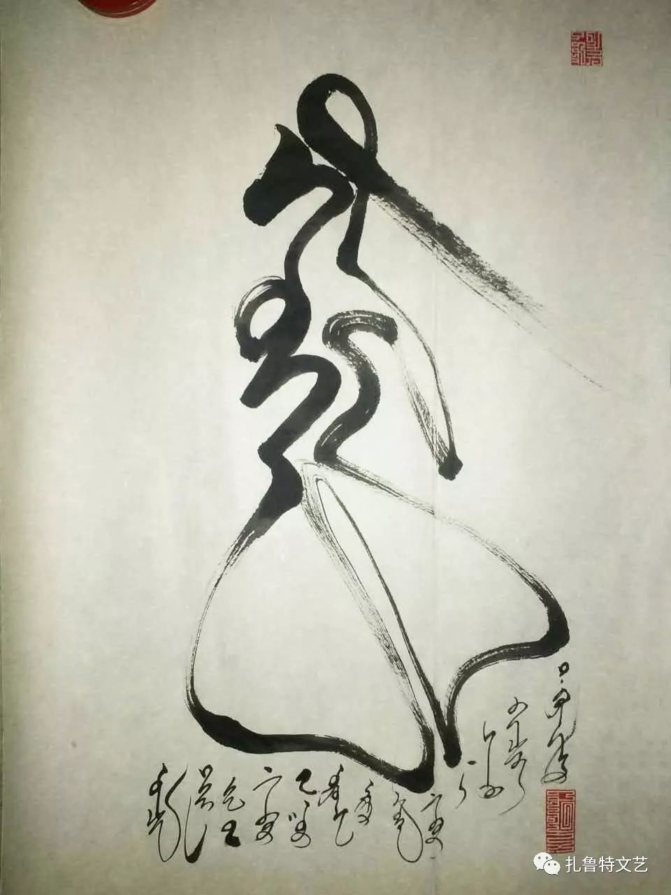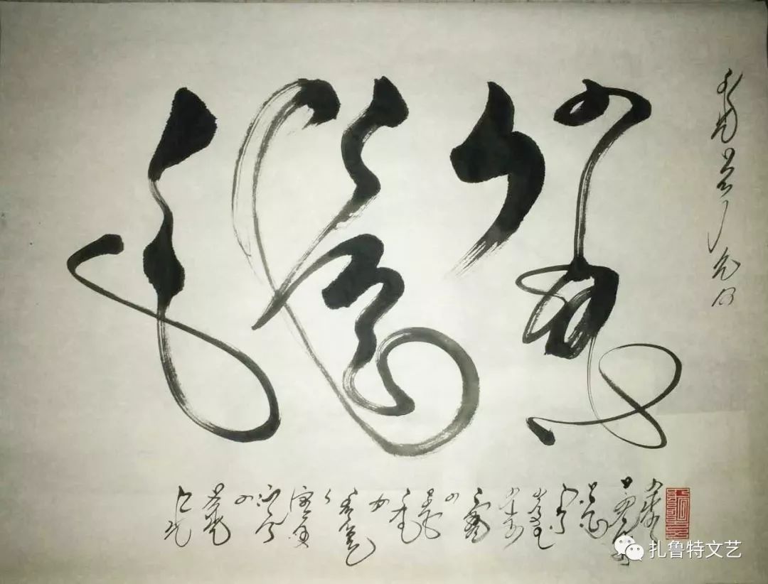 2017年,在旗文化馆举办了个人“牧民书法展”,获得国际中国美协蒙汉书法杰出艺术成就奖,被聘为国际中国美协书法学会常务理事,被区、市、旗电视台报道;2018年书法作品《蒙古姑娘》参加“美国国际书法展”荣获银奖;2018年版画作品荣获“内蒙古自治区一带一路版画大赛”铜樽奖;2018年7月7日,在扎鲁特版画院举办个人书法展,同时被聘为国际中国美术家协会(U.S.A)会员、理事、书法艺委会学术委员、副主任。
