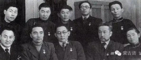 后排左起:N.达木丁苏荣、敖依都布、O.策布格扎布、Sh.纳楚格道尔吉、S.却木布勒
