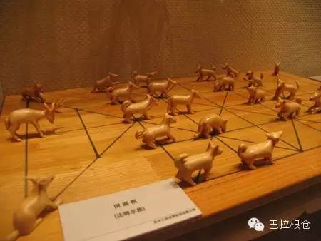 蒙古鹿棋棋盘纵横交错,变化无穷。千百年来,在蒙古族民间一直盛行不衰。"鹿吃狗"到"狼吃羊"的演变,也表现出了游牧民族与牲畜的密切关系和人能征服和驯化动物的能力。