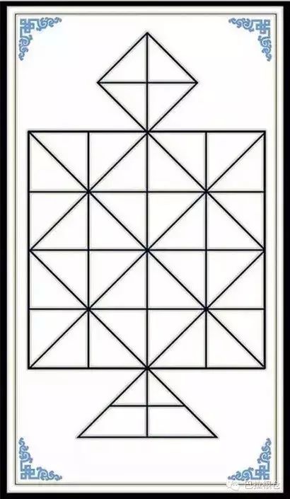 棋盘是画在纸上或沙土上的一个正方形,其内各有5条纵横线,斜线6条,交叉成25个点。