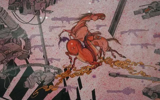 画局部图,机械风之下,依然保留了蒙古马,同时马的画法也结合了中国风。