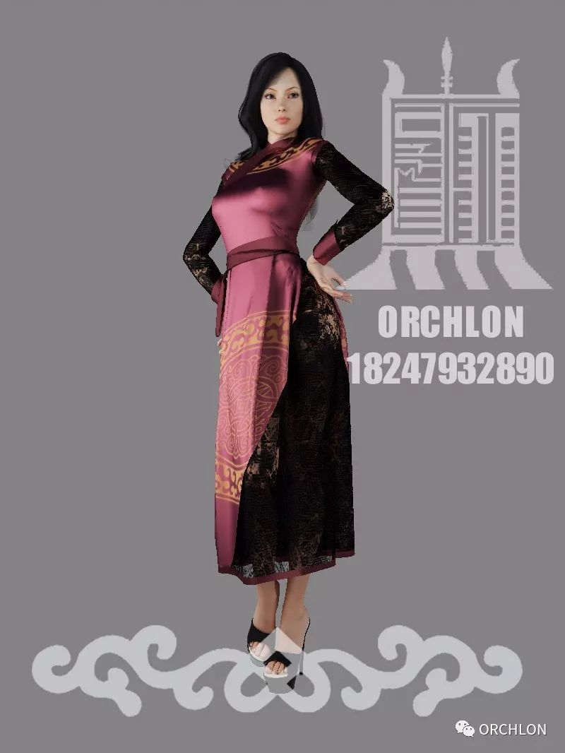 蒙古族服饰也称为蒙古袍,主要包括长袍、腰带、靴子、首饰等。但因地区不同在式样上有所差异。蒙古族服饰具有浓郁的草原风格特色,以袍服为主,便于鞍马骑乘。因为蒙古族长期生活在塞北草原,蒙古族人民不论男女都爱穿长袍。牧区冬装多为光板皮衣,也有绸缎、棉布衣面者。夏装多布类。长袍身端肥大,袖长,多红、黄、深蓝色。男女长袍下摆均不开衩。红、绿绸缎做腰带。