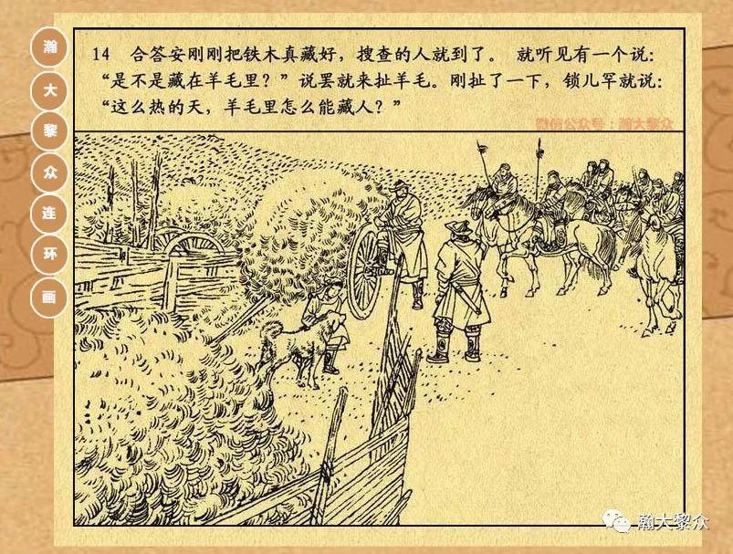 14合答安刚刚把铁木真藏好,搜查的人就到了.就听见有一个说:”是不是藏在羊毛里?”说罢就来扯羊毛。刚扯了一下,锁儿罕就说:“这么热的天,羊毛里怎么能藏人?”
