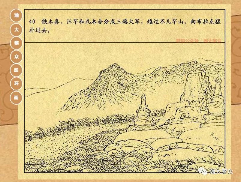 40铁木真、汪罕和札木合分成三路大军,越过不儿罕山,向布拉克猛扑过去。