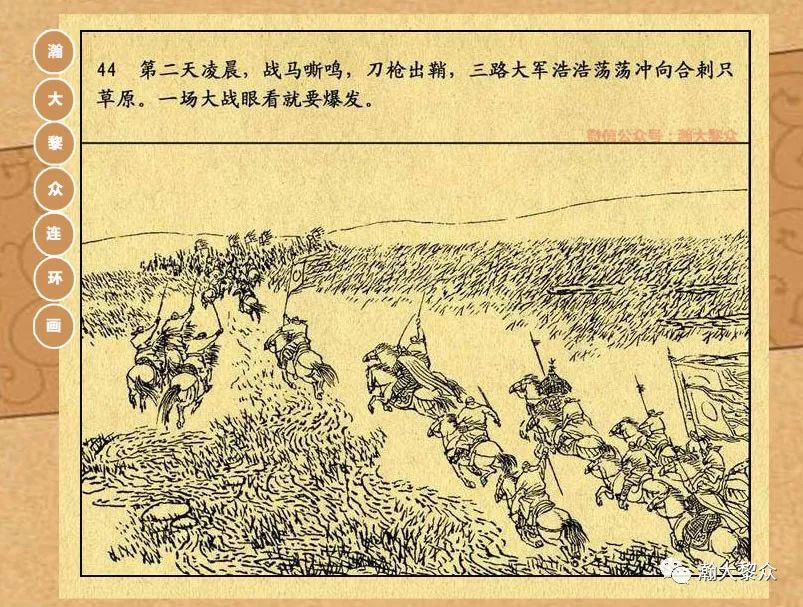 44第二天凌晨,战马嘶鸣,刀枪出鞘,三路军浩浩荡荡冲向合刺只草原。一场战眼看就要爆发。