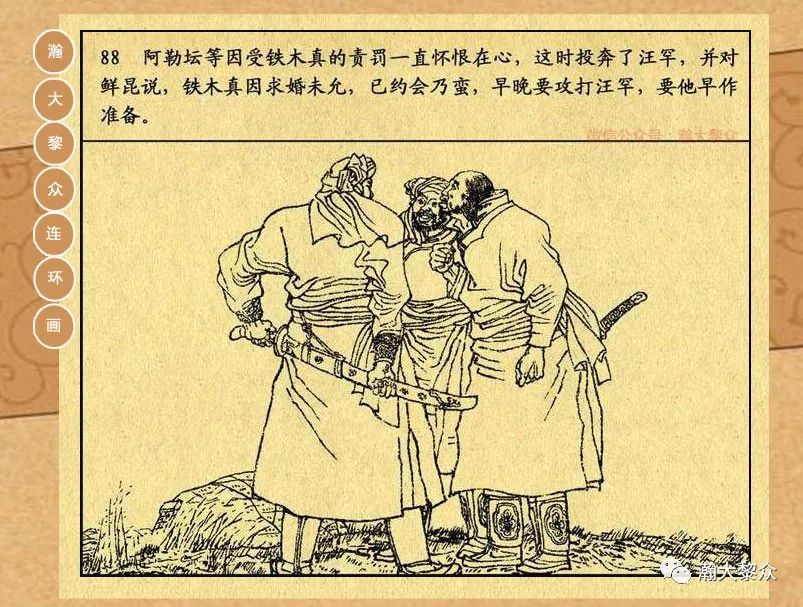 88阿勒坛等因受铁木真的责罚一直怀恨在心,这时投奔了汪罕,并对鲜昆说,铁木真因求婚未允,已约会乃蛮,早晚要攻打汪罕,要他早作准备。