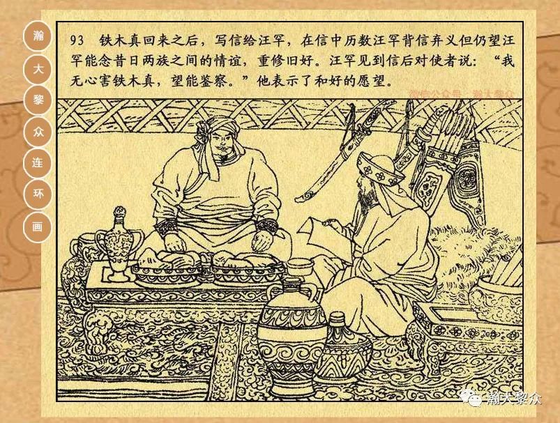 93铁木真回来之后,写信给汪罕,在信中历数汪罕背信弃义但仍望汪罕能念昔日两族之间的情谊,重修旧好。汪罕见到信后对使者说:“我无心害铁木真,望能鉴察。”他表示了和好的愿望。
