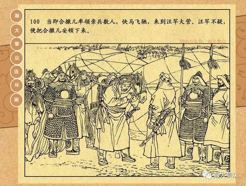 100当即合撒儿率领亲兵数人,快马飞驰,来到汪罕营。汪罕不疑,便把合撒儿安顿下来。