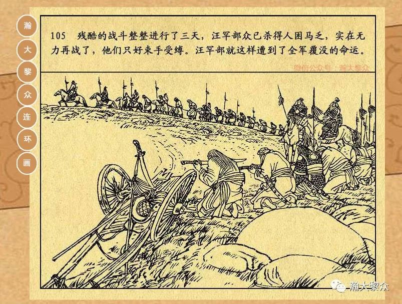 105残酷的战斗整整进行了三天,汪罕部众已杀得人困马乏,实在无力再战了,他们只好束手受博,汪罕部就这样遭到了全军覆没的命运。