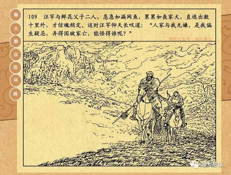 109汪罕与鲜昆父子二人,急急如漏网鱼,累累如丧家犬,直逃出数十里外,才惊魂稍定。这时汪罕仰天长叹道:“人家与我无嫌,是我偏生疑忌,弄得国破家亡,能怪得谁呢?”