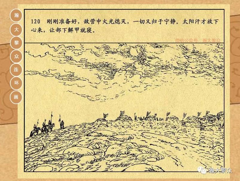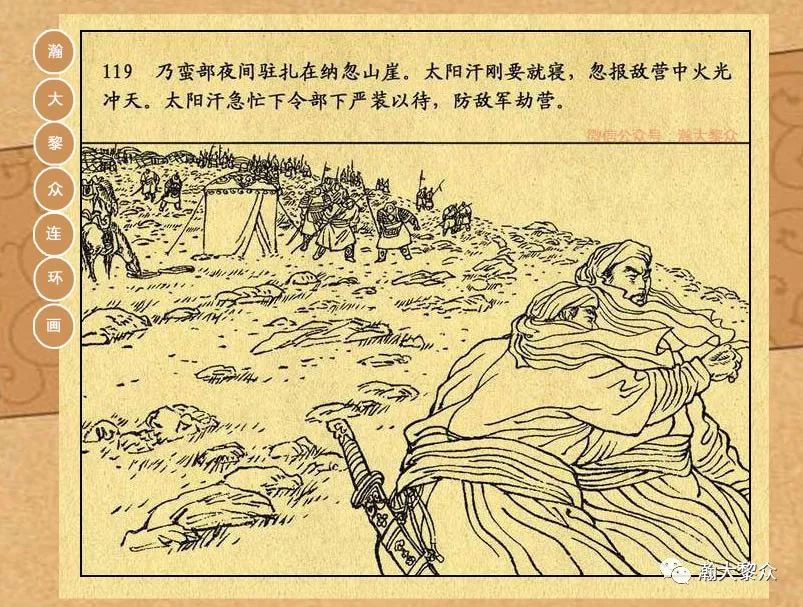 120刚刚准备好,敌营中火光熄灭,一切又归于宁静。太阳汗才放下心来,让部下解甲就寝。