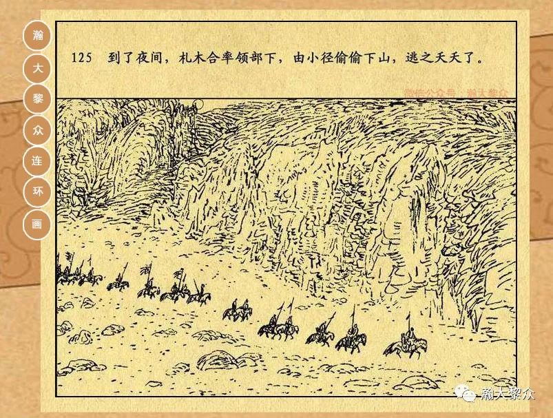 125到了夜间,札木合率领部下,由小径偷偷下山,逃之夭夭了。