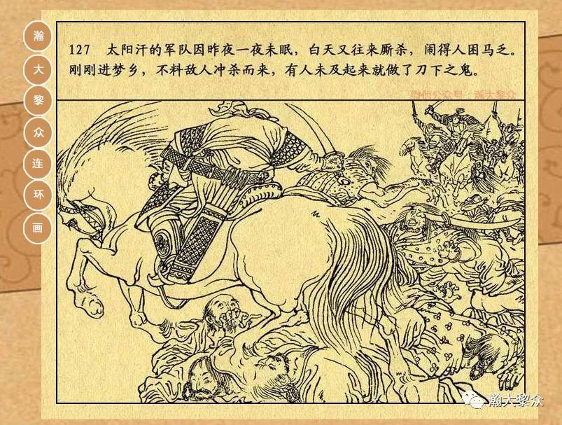 127太阳汗的军队因昨夜一夜未眠,白天又往来厮杀,闹得人困马乏。刚刚进梦乡,不料敌人冲杀而来,有人未及起来就做了刀下之鬼