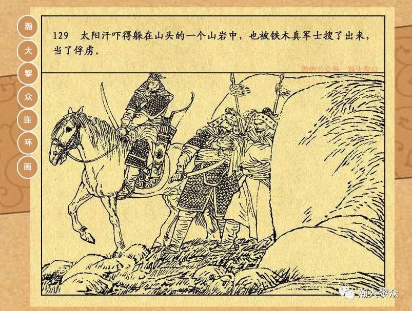 129太阳汗吓得躲在山头的一个山岩中,也被铁木真军士搜了出来当了俘虏。