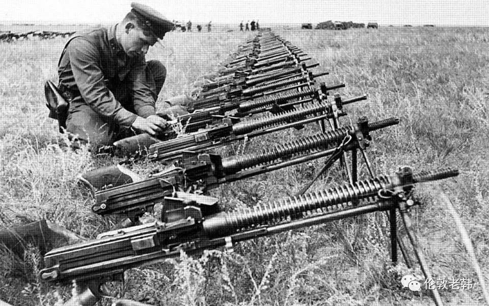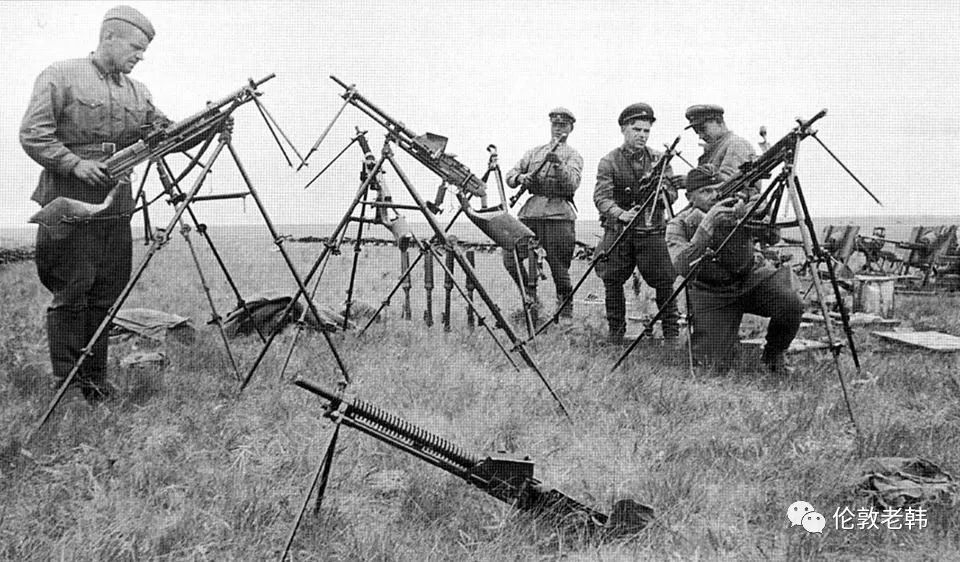 哈拉欣河战役:苏军士兵指挥官检查缴获日军的6.5毫米口径的大正十一年式轻机枪,和带支架的防空轻机枪。