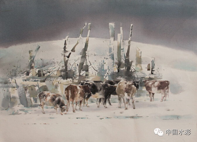 2002年《雪塬》入选第六届全国水彩·粉画展(上海美术馆)