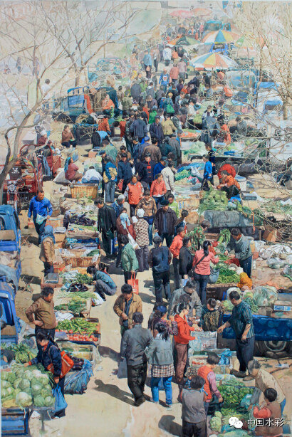 2014《春社•三》参加第十二届全国美展水彩粉画展