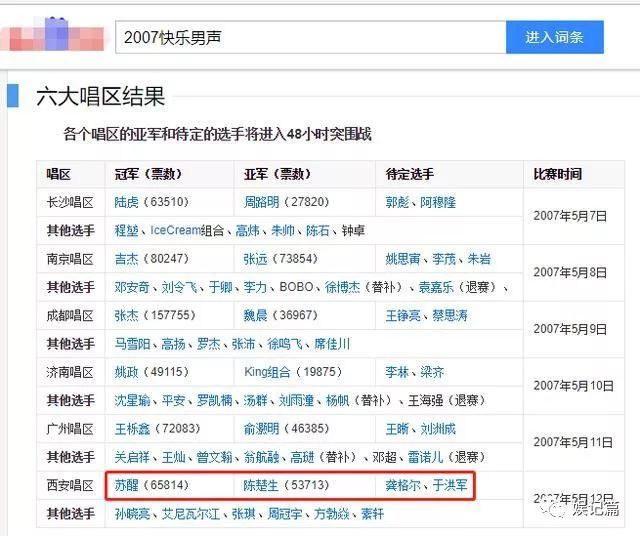 当年,西安唱区的冠军是苏醒,亚军是陈楚生;龚格尔输给了苏醒和陈楚生,是待定选手,确实是四强。最终,陈楚生获得全国冠军,苏醒获得全国亚军,说明这个唱区实力很强。