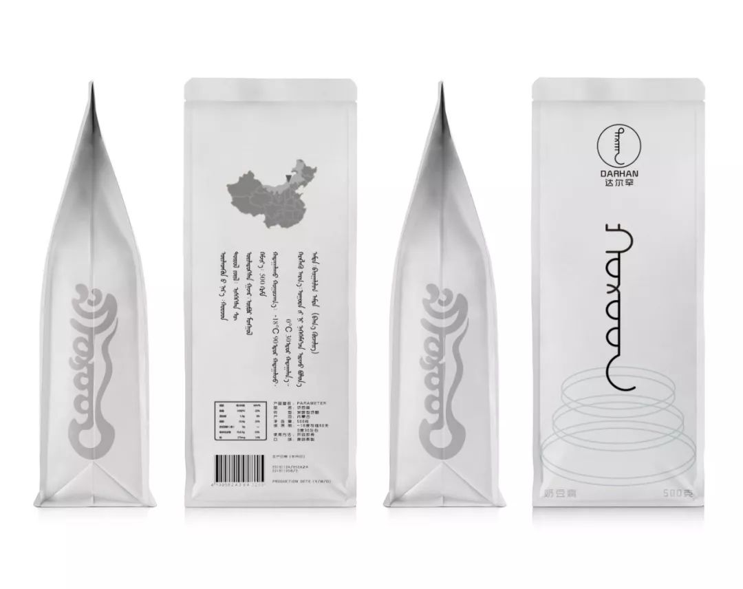 “胡乳达”这三个字,本是蒙古文中“奶豆腐”之意,本次设计蒙古族奶食品包装,所采用的创意主要是表达我们蒙古民族非常喜欢白色,特别是乳白色来比喻洁白的哈达,显得纯天然,环保让人放心食用。