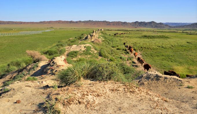 准噶尔汗国都城遗址又称“道尔本厄鲁特古城”,蒙古语即“四卫拉特古城”之意,位于新疆和布克赛尔蒙古自治县县城以东5公里处(距318省道仅1公里)。