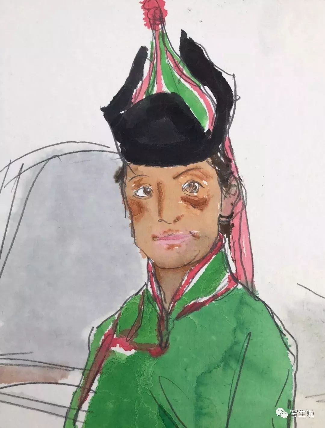 局部·穿绿色蒙古袍的姑娘
