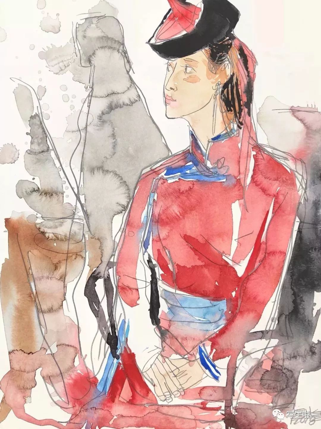 局部·穿红色蒙古袍的额吉